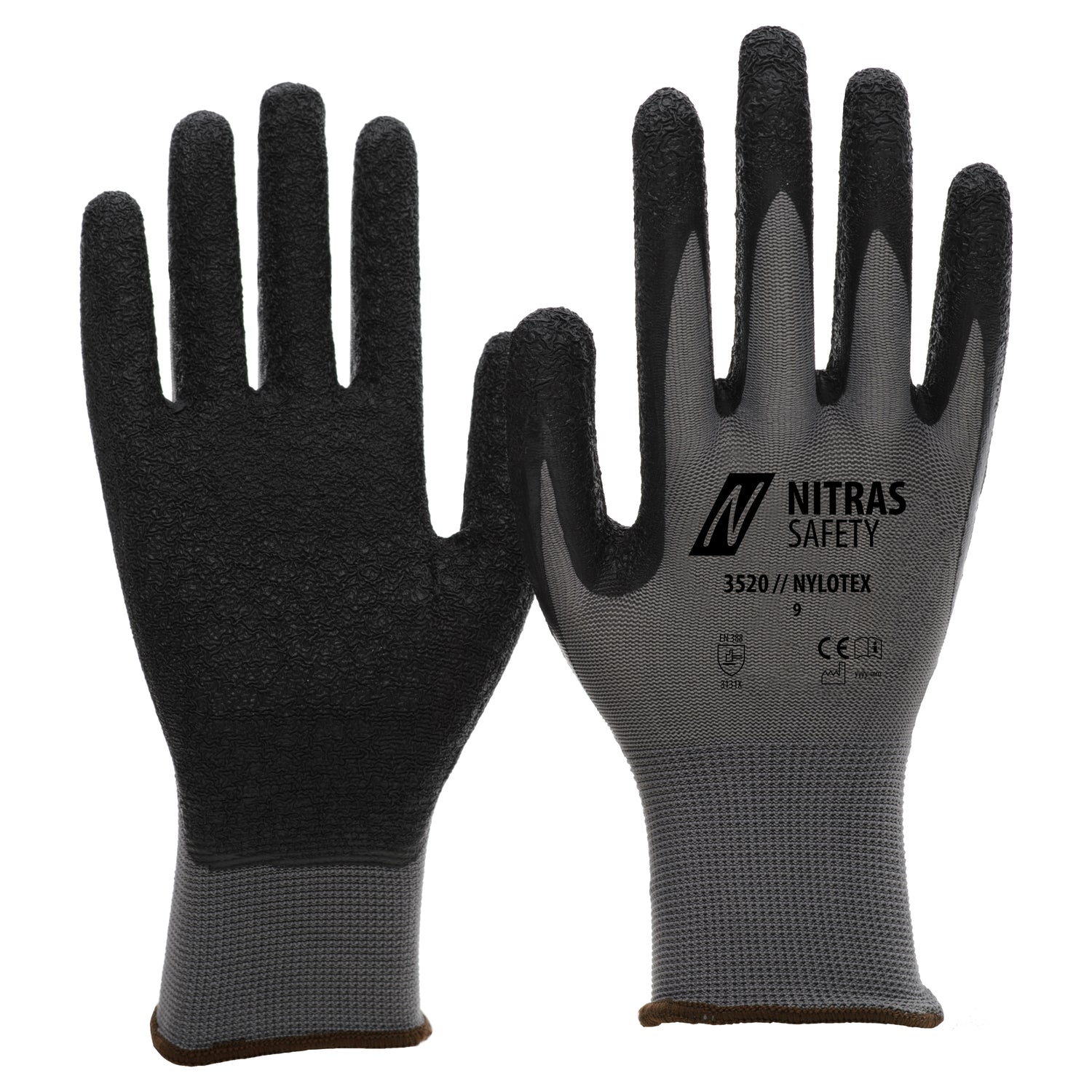 angenehme schrumpfgeraute Nylonhandschuhe mit Teilbeschichtung in Innenhand und Fingerkuppen