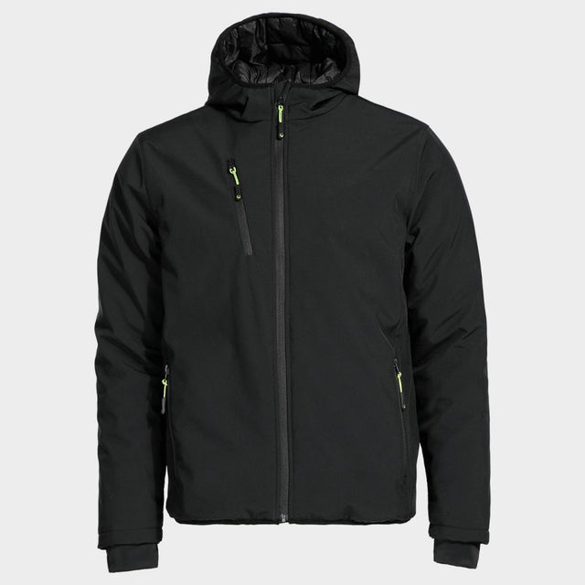 Wasser- und winddichte Jacke mit Kapuze und funktionalem Design, die hervorragenden Schutz und Komfort bei schlechtem Wetter bietet.